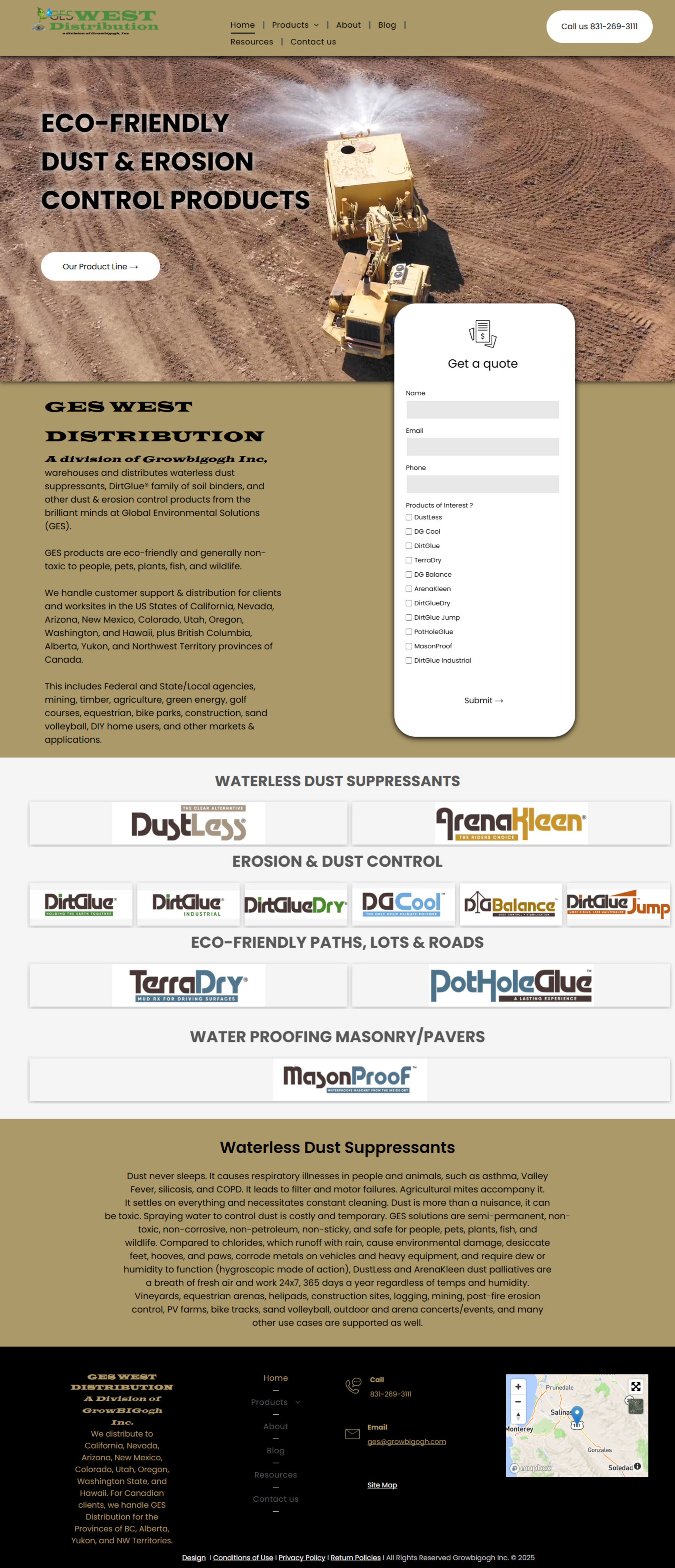 GES WEST partners with Global Environmental Solutions to provide sustainable dust suppression and soil stabilization products. Designed for various sectors including construction, mining, equestrian arenas, and residential use, our products offer effective results while supporting environmental responsibility. We assist in controlling dust, reducing erosion, improving safety, and lowering long-term expenses.Our service area includes California, Nevada, Arizona, New Mexico, Colorado, Utah, Oregon, Washington, Hawaii, and parts of Canada. Our products are typically non-toxic and non-corrosive, ensuring safety for humans, wildlife, plants, and marine life.https://www.geswest.com/